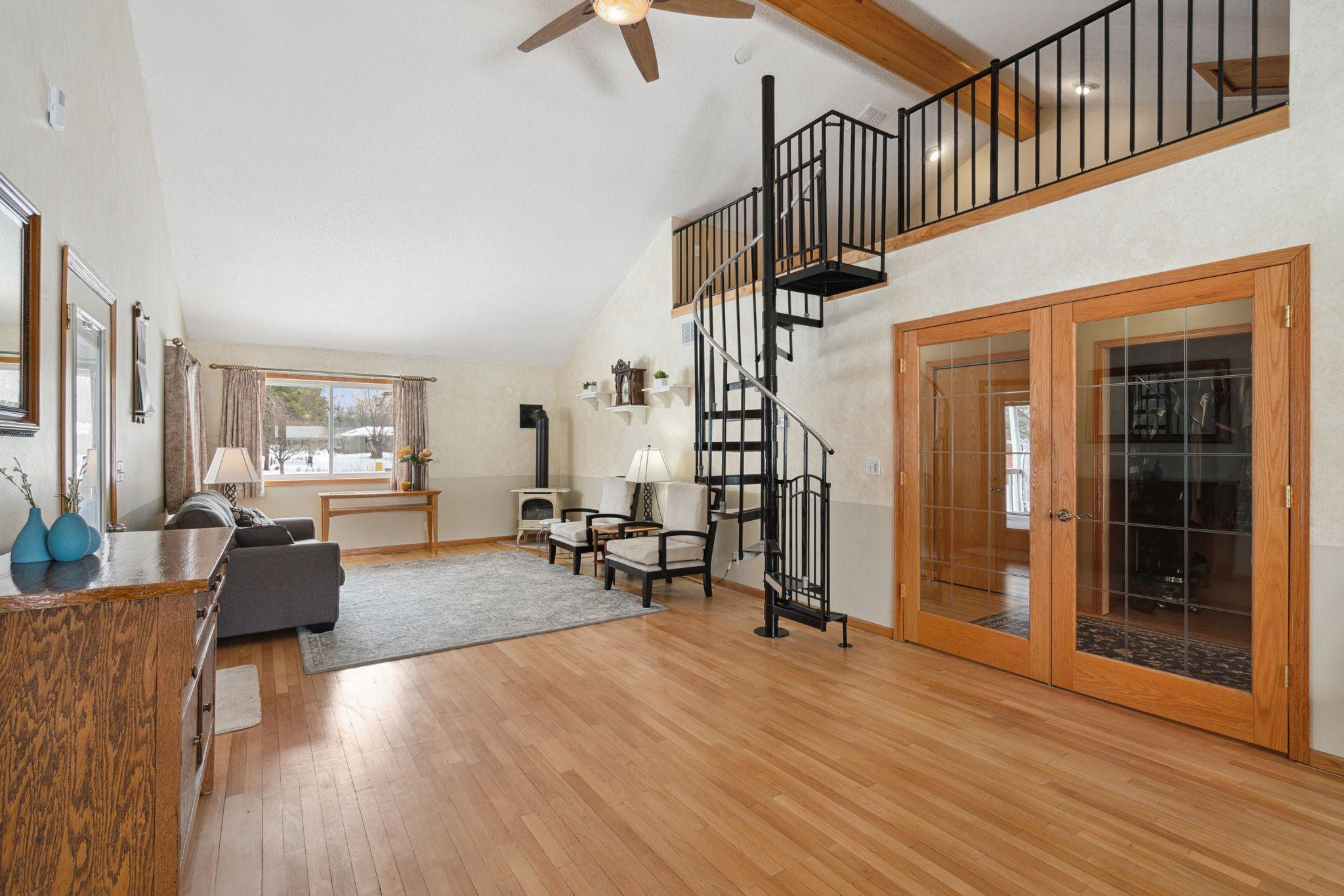Unique sprawling home on a 1+ acre lot in a wonderful Minnetonka neighborhood! This home has so much to offer! Step inside to a huge breezeway with plenty of storage connecting the garage to the house thru french doors. The family room boasts vaulted 2-story ceilings, a gas stove fireplace, a cool spiral staircase up to the loft, dining space & access to the back patio, backyard & hot tub!! There's a front living room with entryway, hardwood floors & continues to the sizable kitchen & then the 2 main floor beds including primary suite with 3/4 bath & walk out to the patio! Up features a private bed with ensuite 1/2 bath! LL has 4th bedroom with egress window, a 3/4 bath with SAUNA, a storage room & laundry. Peaceful neighborhood & nature filled lot, plenty of space for multiple people to live & enjoy! New A/Cs, metal roof, woodshop in the back of the garage and tons of square footage! Make this Minnetonka home yours today!!