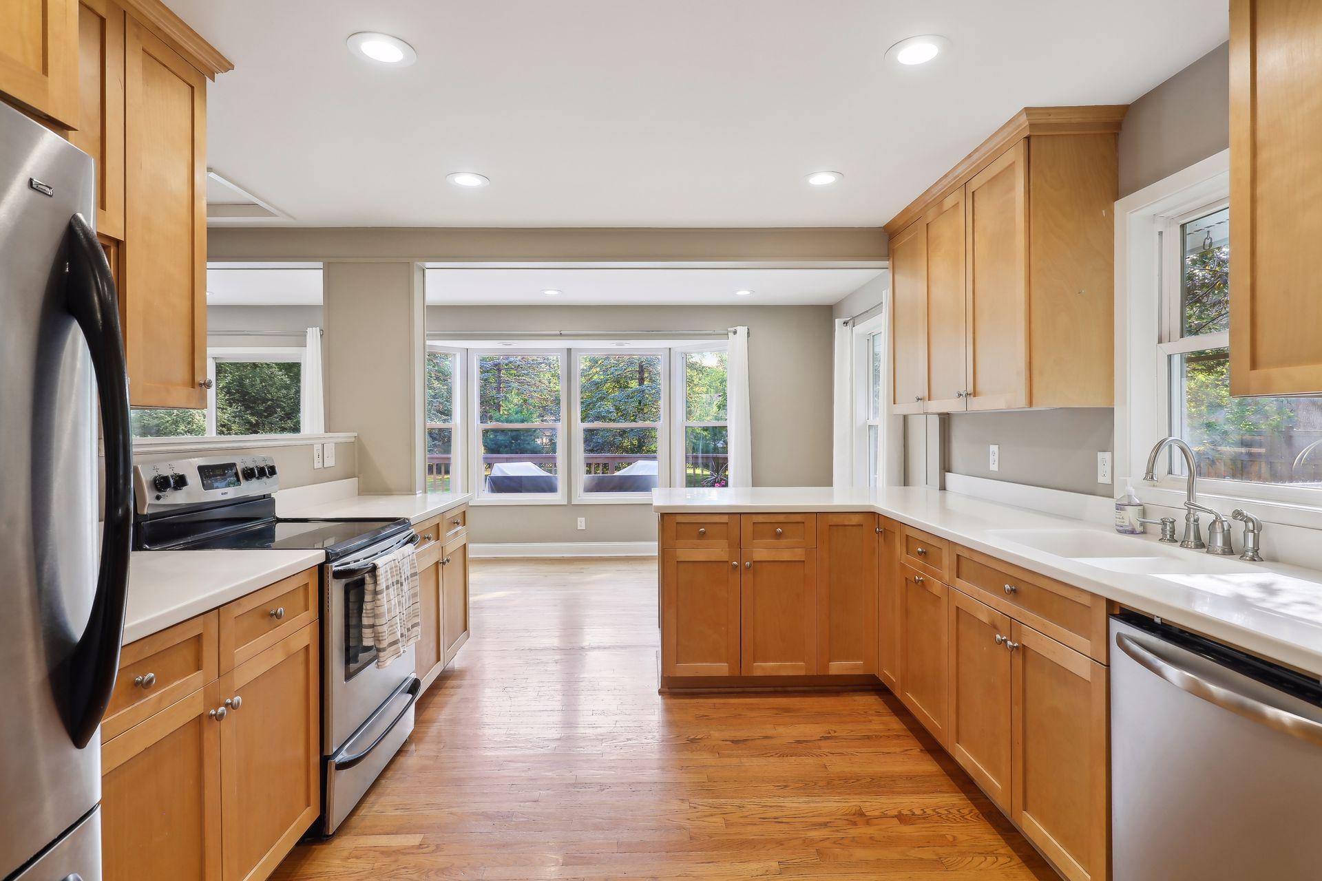 Wonderful home perfectly nestled back on a large private lot. Home features a fully fenced back yard, 3 bedrooms, two wood burning fireplaces, updated bathrooms and a full lower level in law suite with kitchenette and private entrance offering many unique opportunities. Recent updates include: 2020 remodeled lower level including the addition of efficiency kitchen, bathroom remodel, and all new LL flooring. 2018 updates include new HVAC, windows, siding, interior paint, washer and dryer, attic insulation, radon mitigation. 2023 New water heater, This one has it all! Location with close proximity to regional trail system, restaurants, and easy access to highway while maintaining charm, serenity and a peaceful retreat setting with expansive lawn and beautiful trees...move right in!