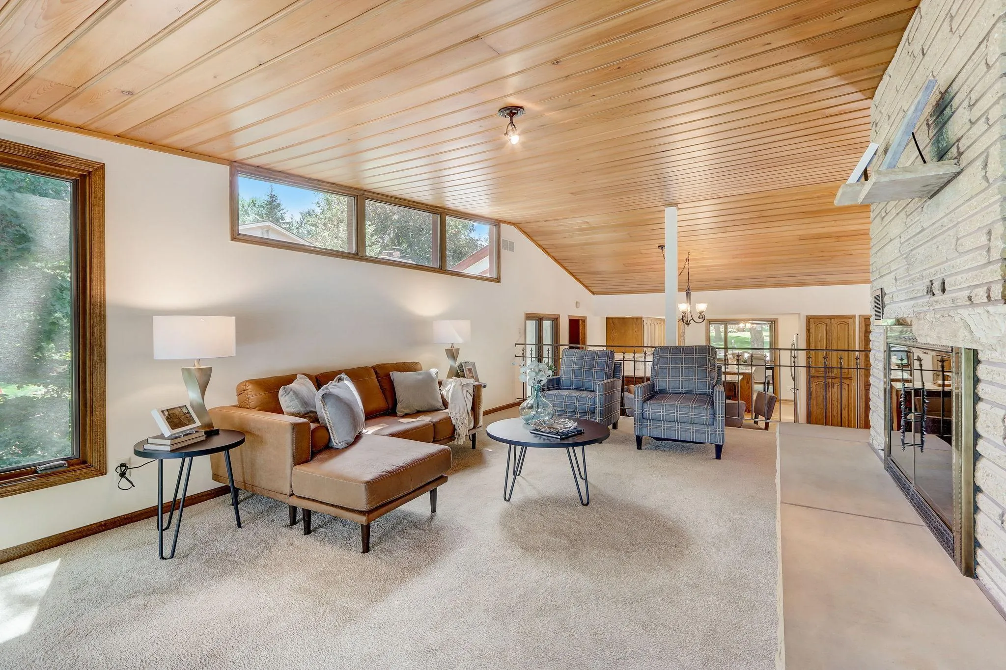 Stunning home situated on Lost Lake with absolutely gorgeous views, and wonderful features throughout! Walk into the spacious foyer overlooking the open floor plan with beautiful vaulted tongue and groove ceilings - this home is great for entertaining! Fantastic kitchen equipped with an abundance of storage, sparkling granite countertops, skylight, stainless steel appliances + adjacent formal and informal dining space. Main level bedroom, access to the attached garages, and powder room complete the main level. Expansive upper level living room with center wood-burning fireplace, gorgeous lake views & access to the 3-season porch. Lower level primary suite with cozy fireplace & luxurious private full bathroom. Two additional bedrooms, and 3/4 bathroom complete the lower level. Lowest level provides an enormous family room, sauna room, and finished laundry room + access to the backyard. Enjoy lake life on this gorgeous lot with mature trees! Close to shopping, dining & Hwy-169.