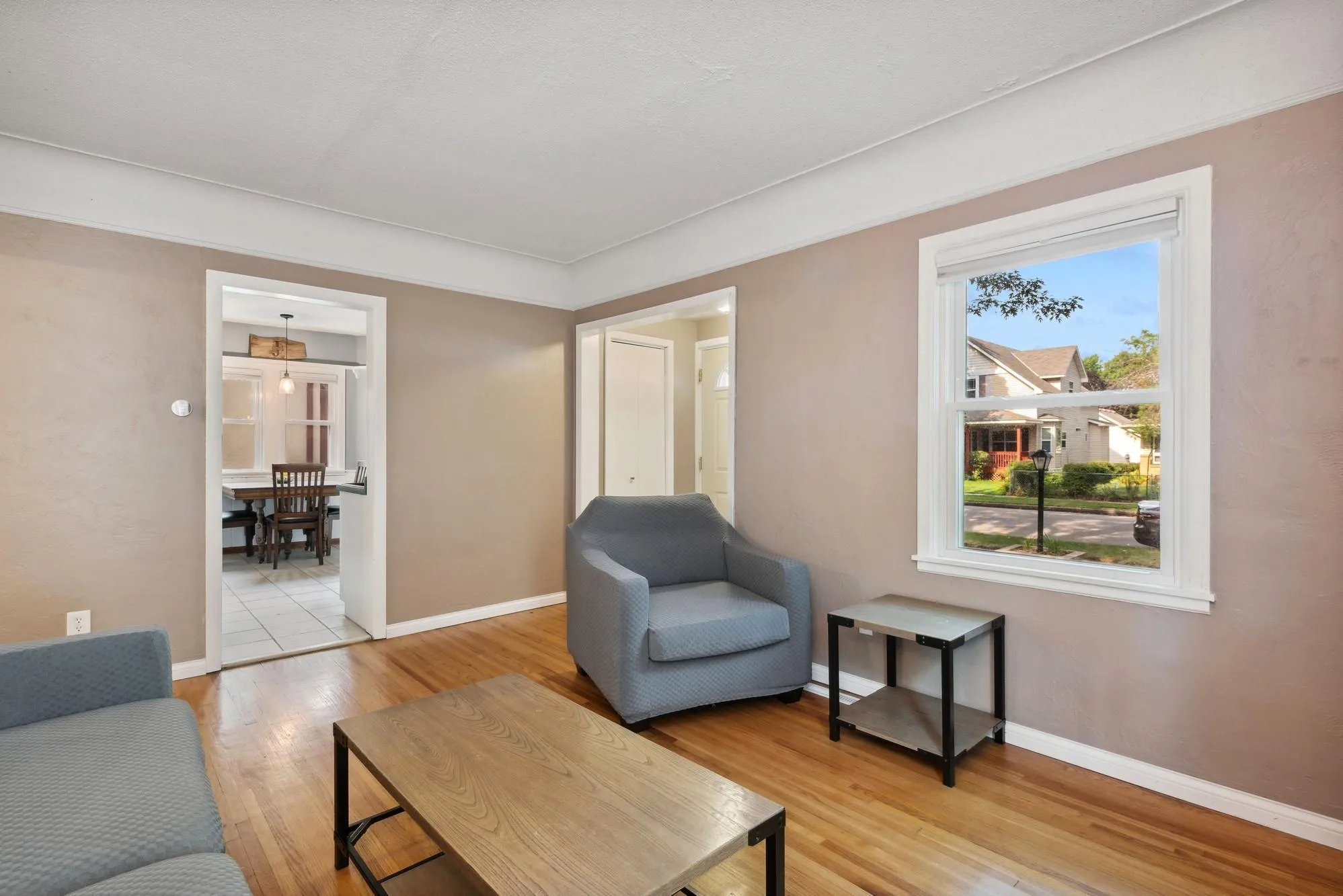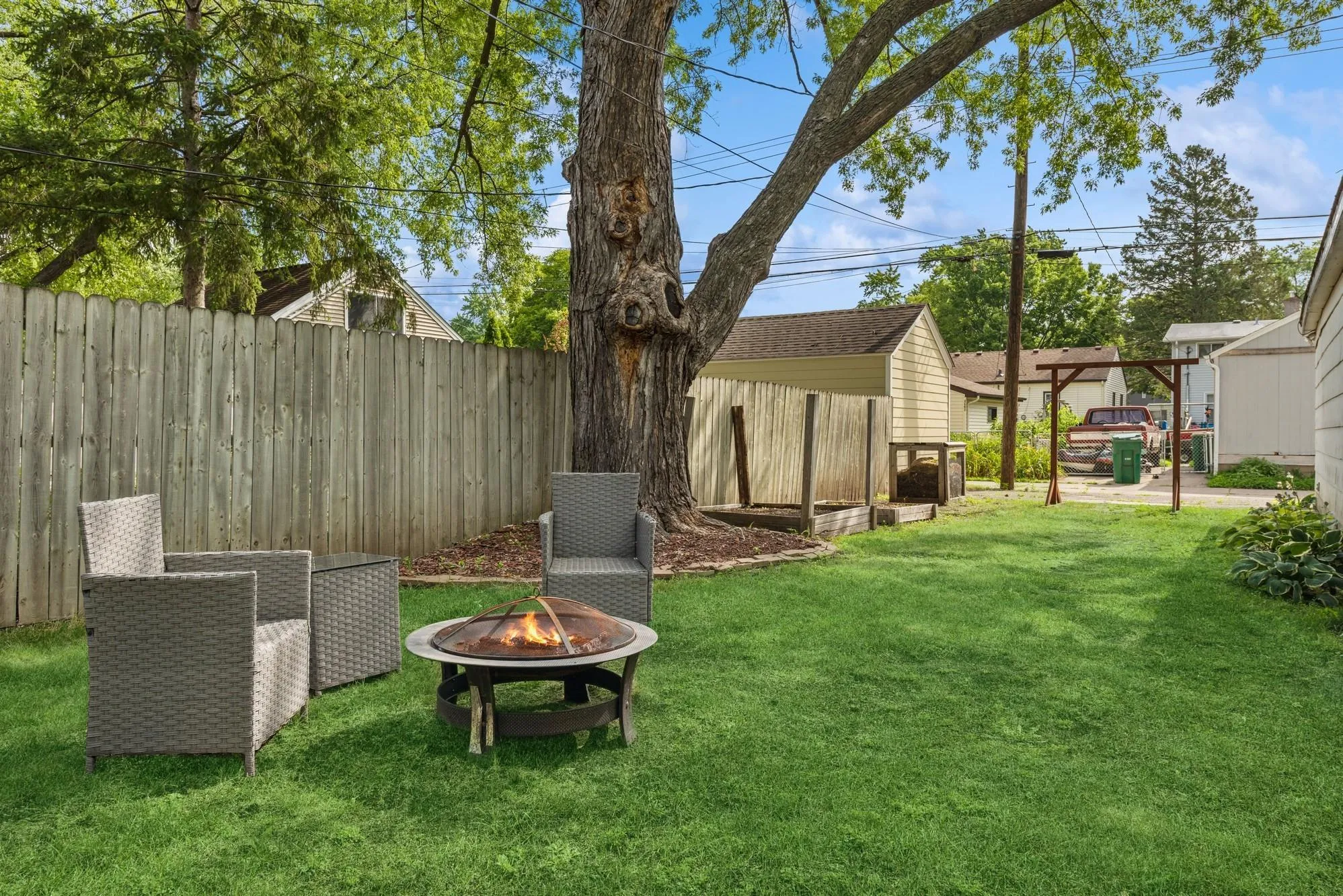 Charming 1.5 story home in the heart of Robbinsdale. This gem offers the original hardwood floors throughout the home. Spacious primary bedroom with built in cabinets. Large garage providing plenty of space for parking and additional storage needs. The backyard's patio and bonfire pit area create a wonderful outdoor space for entertaining. It's perfect for gatherings, barbecues, and relaxing evenings by the fire. Large utility room with plenty of room for storage. Central air conditioning. Freshly painted. New washer/ dryer. 10 minutes from downtown Minneapolis and close to restaurants, shopping, major highways, parks and more!